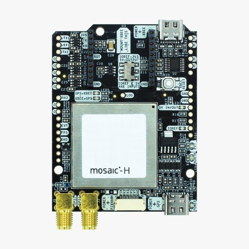 mosaicAlto is a carrier board that integrates the mosaic-X5 or mosaic-H GNSS receivers, effectively transforming the Arduino Pro "Portenta" into a single-board computer equipped with a GPS/GNSS receiver. While Arduino is widely recognized in the DIY community, Arduino Pro represents the professional iteration of this popular electronics platform, catering to industrial and other cutting-edge professional applications such as agriculture and construction.