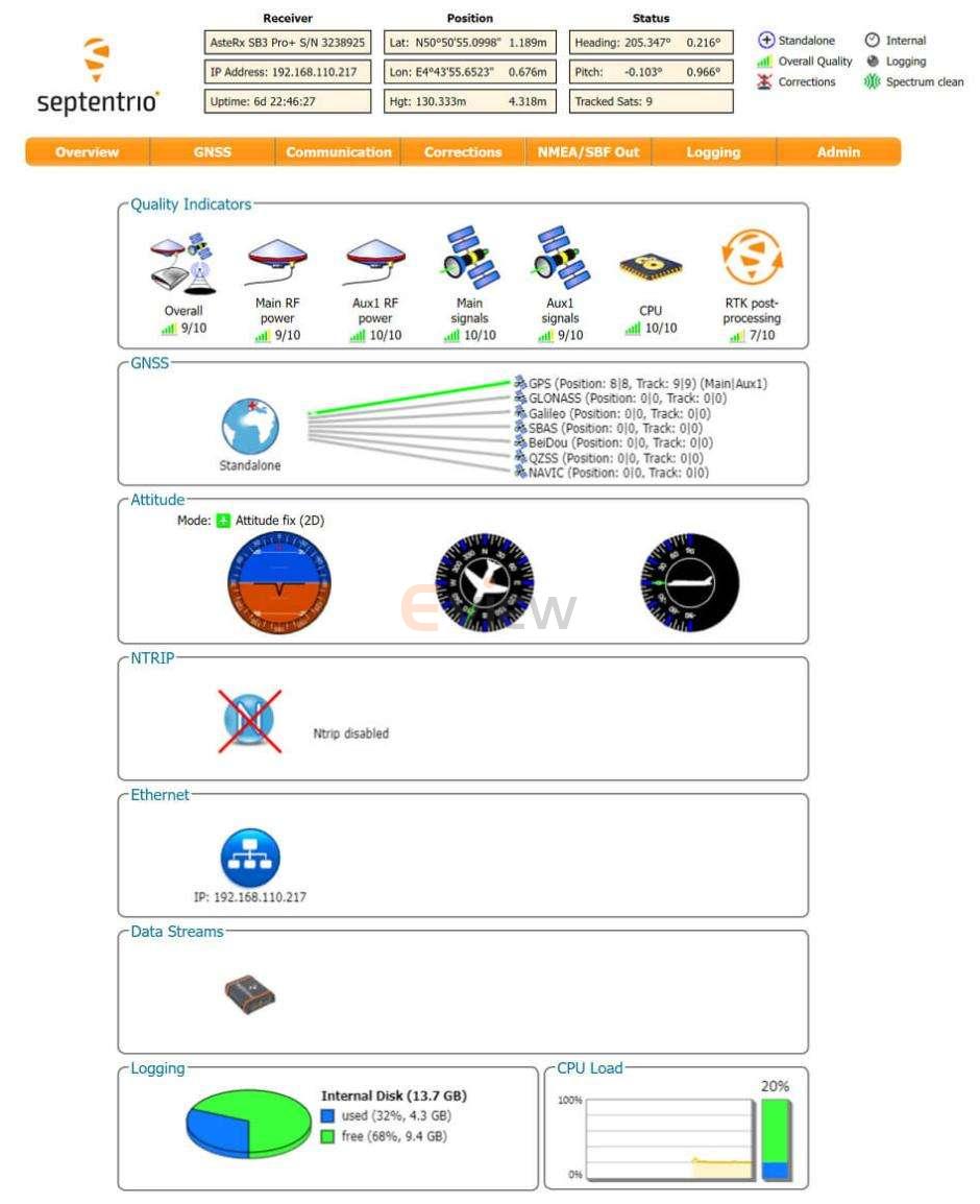 Metal and large nearby structures can reflect GNSS signals and produce multipath. The Advanced Multipath Mitigation Technology APME+ effectively disentangles direct and reflected signals enhancing both position and measurement quality. APME+ is bias free and, in line with Septentrio’s commitment to maximum configurability, can be disabled.