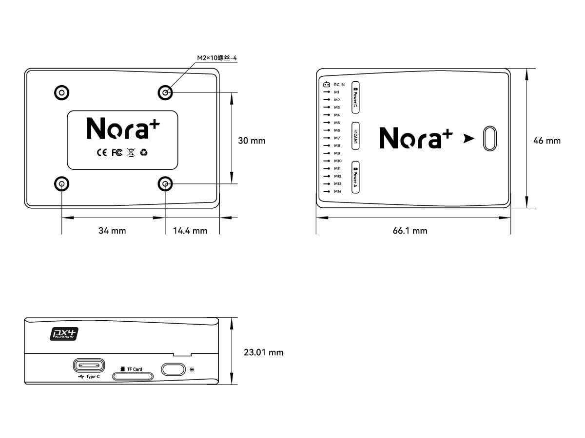 Nora+ autopilot uses STM32H743 series processors CPU, Cortex-M7 core (with double precision Floating-Point Unit). It makes operating frequency increase to 480Mhz, 2MB Flash,1MB RAM Meet the higher computing needs of flight controllers Compared with the STM32F7 product line, the dynamic power consumption efficiency is doubled. |