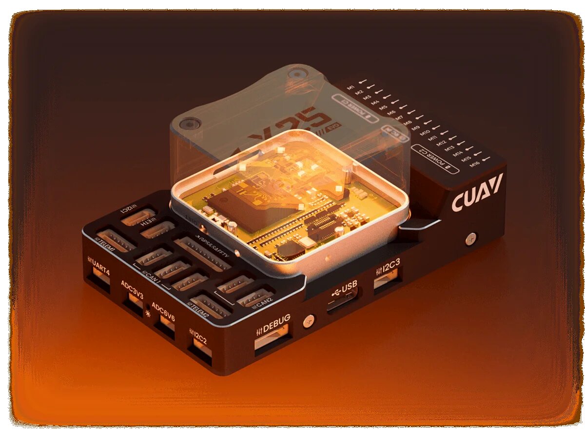 It adopts High-Performance STM32H7 processor, bringing powerful intelligent computing power to the system and supporting secure boot and secure firmware upgrade services. During operation, the CPU occupancy rate is lower, and it is compatible with the complete ArduPilot and PX4 drivers and functions (such as IMU temperature learning, non-GPS navigation, FFT filtering algorithm and LUA script, etc.), and provides ample space for follow-up development and compatibility with new drivers.